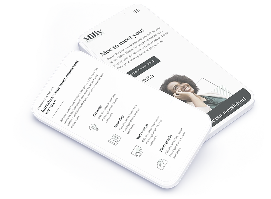 Milly has one custom feature that makes it incredibly easy to match your branding. You can change colors globally in one place – and watch the entire website transform. All respective colors will be changed, making the result perfectly consistent with just a few clicks.